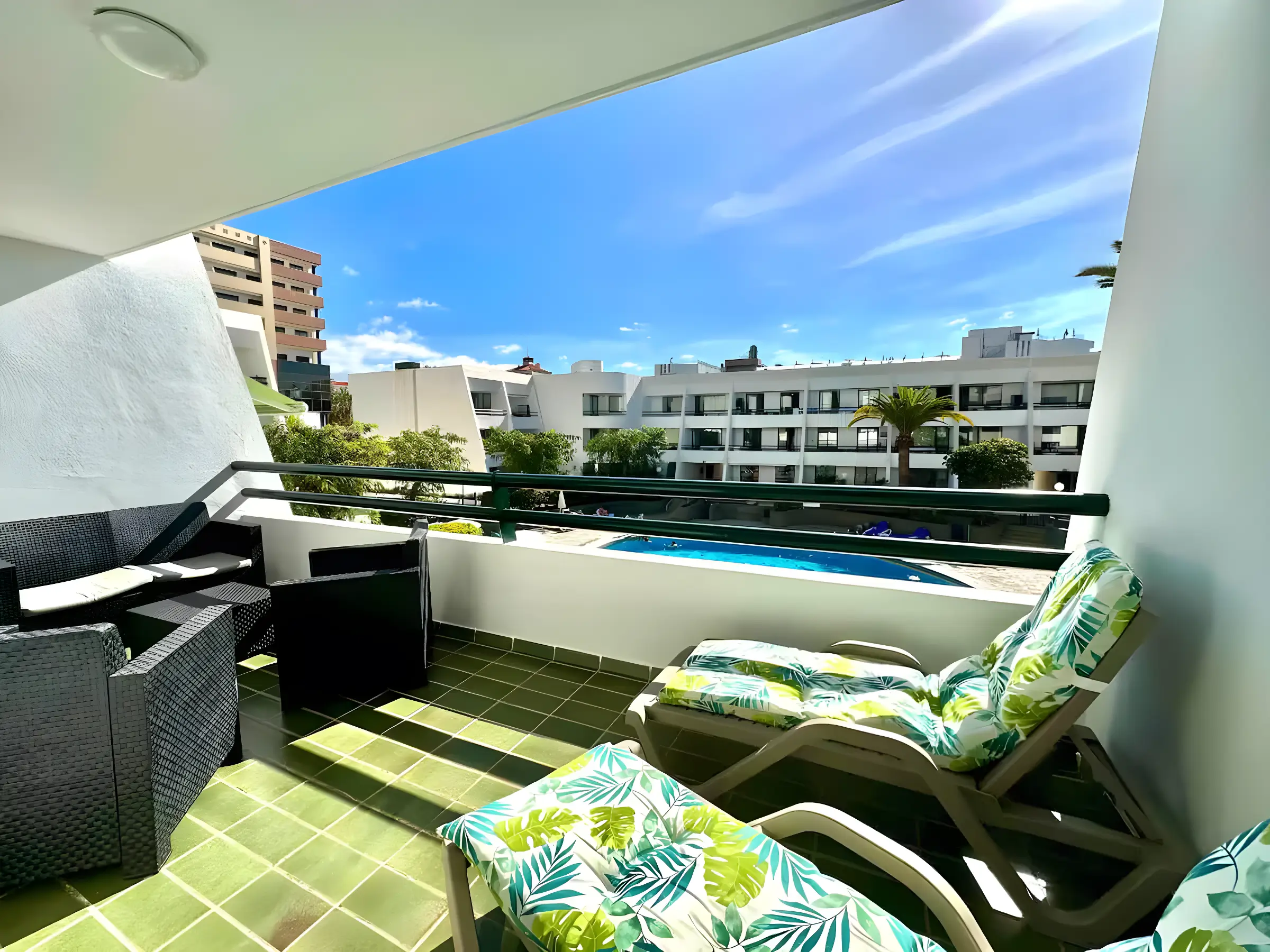 Fabulous views of the pool that you can enjoy from its large furnished terrace, very sunny!